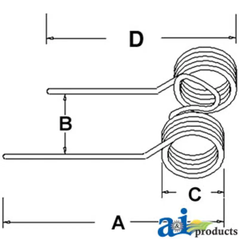 New tedder tooth, right hand. The long tine length is 16.5`, short tine is 15.43`. Coil O.D. measures 1.65` and tine gap measures 4.37`. Fits Vicon hay tedders.