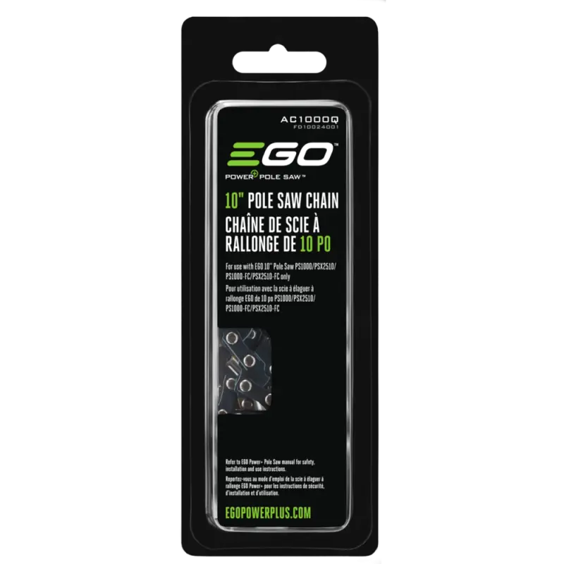 β’ Low kickback chain design β’ ΒΌ-inch pitch β’ .043-inch gauge β’ 56 drive links β’ Compatible with EGO PS1000, PS1000-C, PSX2510, PSX2510-FC
