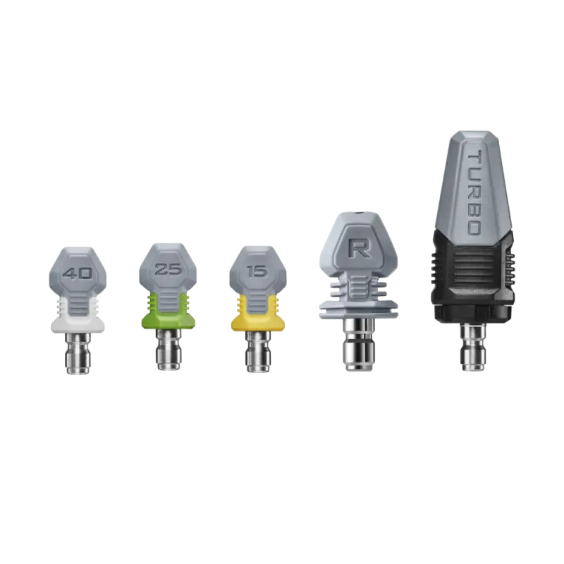 • Kit includes Turbo, 15°, 25°, 40°, and Rinse Nozzles • For use with the POWER+ 2100 PSI Pressure Washer (HPW2100/HPW2105) • Nozzle kit designed to cover high-flow rinsing to heavy-duty cleaning with nozzles that deliver various spray patterns and pressures • Premium rubber-tipped stainless steel nozzles • Max 4500 PSI (15°, 25°, 40°, Rinse Nozzle) • Designed for easy nozzle changes with the quick-connect points on the POWER+ 2100 PSI Pressure Washer wand • Genuine EGO parts ensure compatibility, quality, and performance