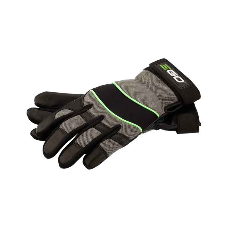 The EGO work gloves are designed to protect your hands and reduce vibration. Made with soft goat skin leather to provide durability and breathability, while the padded palm and knuckles help provide reinforced protection. The spandex stretch panels between the fingers help create the perfect level of comfort and ventilation and the adjustable elastic wrist bands make for the perfect fit needed to tackle any task.