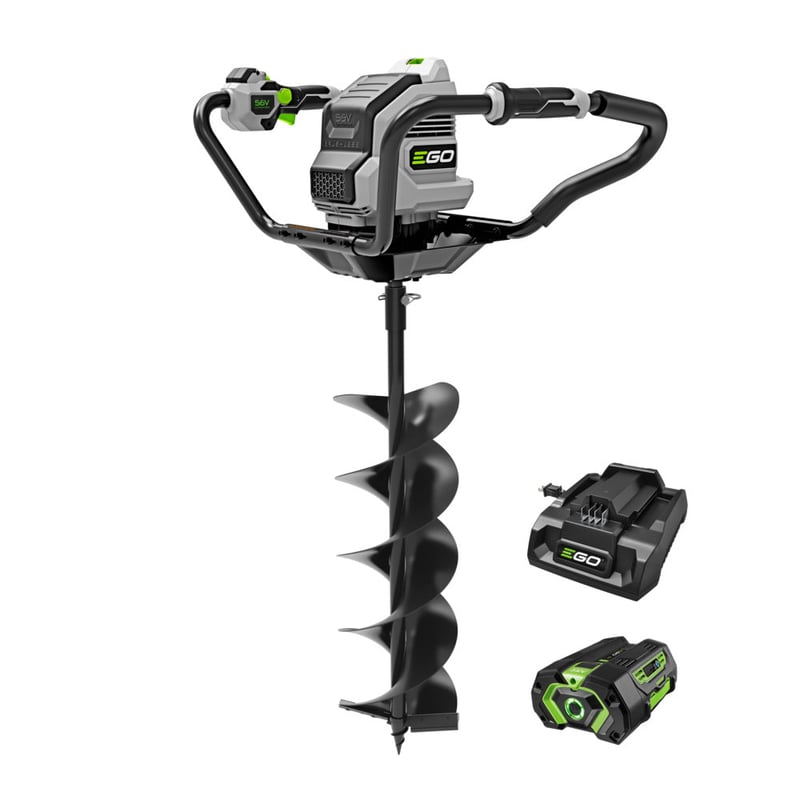 The EGO POWER+ Earth Auger is delivers 65 foot-pounds of torque for boring into hard, rocky soil. Its ergonomic handle design makes the auger easy to maneuver and improves safety, and its anti-kickback system further safeguards from unexpected jams. This cordless garden auger will bore up to 50 holes on a single charge with the included 4.0Ah ARC Lithium™ battery. High and low speeds plus a reverse function allow efficient digging. The auger is equipped with a universal bit connection to allow compatibility with earth and ice bits for added versatility with an 8-inch earth auger drill bit included. Experience Power Beyond Belief™ with the EGO POWER+ Earth Auger.