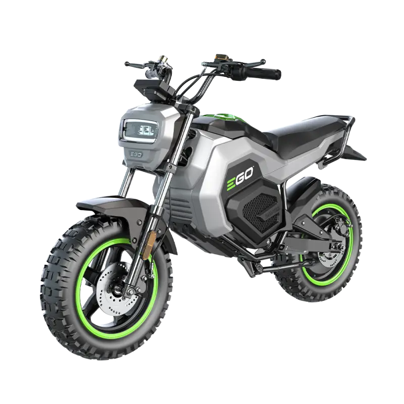 The EGO POWER+ Mini Bike with Peak Power™ technology combines the power of any two EGO POWER+ 56V ARC Lithium™ batteries to deliver quiet acceleration from its powerful hub motor with top speeds up to 28 MPH. Get up to 20 miles of range on a single charge with two included 56V 7.5Ah ARC Lithium™ batteries. Three driving modes including ECO, Normal, and Sport with parental controls deliver a fully customizable riding experience. Full suspension in the front and rear is included for a comfortable ride across any terrain while dual hydraulic disc brakes provide powerful stopping performance. Off-road tires with an aggressive tread invite you to embark on any adventure. For off-road use only by riders ages 16 and older, up to 220 pounds. Helmet and gloves recommended for use.