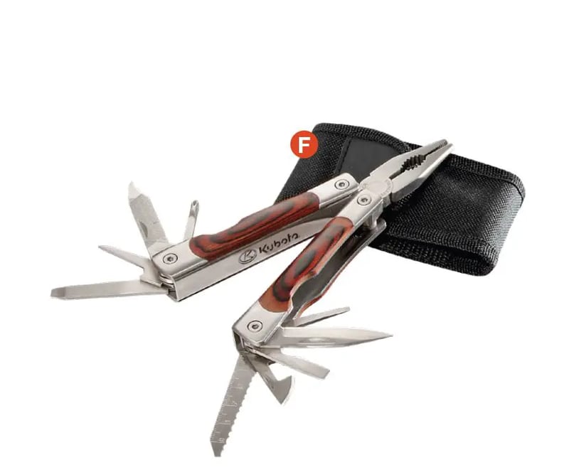 16 function tool includes pliers, 3 knife blades, 3